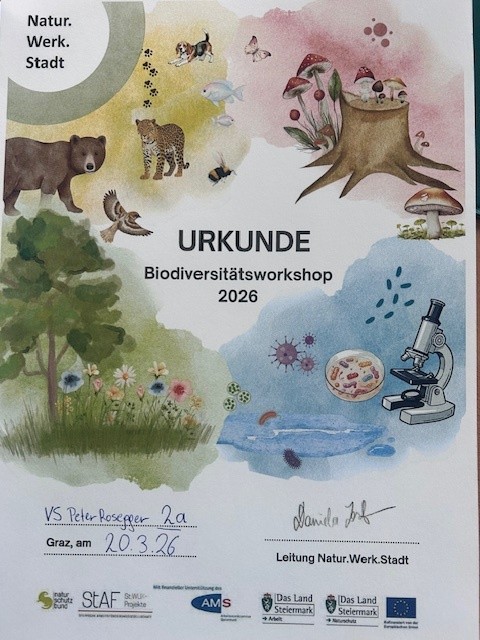 Am 20. März 2026 tauschte die 2a das Klassenzimmer gegen den ehemaligen Vincke-Steinbruch in der Natur.Werk.Stadt. Spielbergweg. Unter dem Motto „Biodiversität in der Stadt“ begaben wir uns auf eine spannende Entdeckungsreise, um zu sehen, wie sich die Natur ihren Raum mitten in Graz zurückerobert.